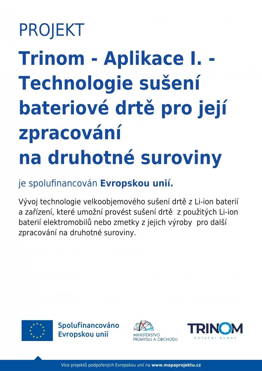 Technologie sušení bateriové drtě pro její druhotné zpracování